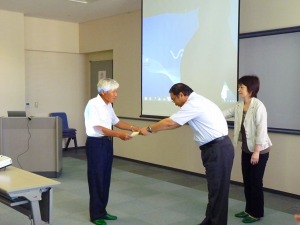 (写真左)講義に入る前に、平成22年度修了生への修了証授与が行われました。