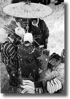 | 雪晴れ・岩手県陸中川尻 1957年 | 雪の市場・秋田朝倉市場 1953年 |