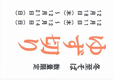 ▶期間:12月11日(木)~14日(日)、12月18日(木)~12月21日(日)