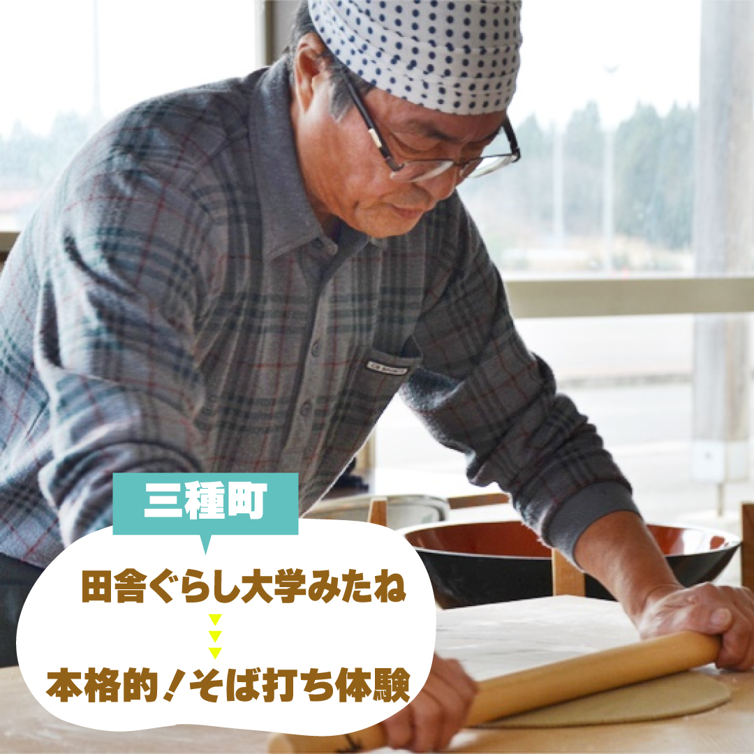 本格的な手打ちそばの作り方を学べます。自分で打つそばの味は格別!小学4年生(10歳)以上が対象です。