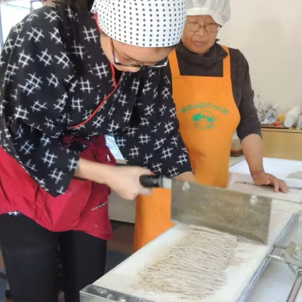 「中山そば」は秋田・大館の年越しそばとして有名です。講師は陽気な母さんたち!自分で打つそばの味は格別です。