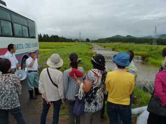 平成22年9月11日、秋田県農林部農山村振興課が主催する日帰りモニターバスツアーの模様をレポート。 (上記写真は、横岡集落の広大な棚田。石積みの棚田は、県内では珍しい) |