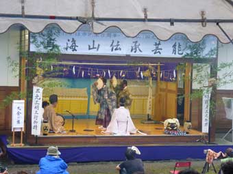 金峰神社の敷地内に特設会場を設置し、にかほ市誕生5周年記念・「鳥海山」国史跡指定記念事業として「鳥海山伝承芸能祭」が行われた。 全国的にも珍しい延年舞いとして残っている「チョウクライロ舞」はその昔(明治以前)、修験者が舞ったとされる。普段は金峰神社境内にて執り行なわれる「チョウクライロ舞」が、今回特別に競演会場にて披露された。 |