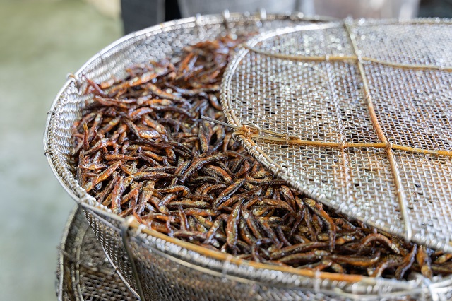 「佃煮を作るこだわりとして、まず鮮度のいい高品質な素材を厳選をするのが一番大事」と社長の千田清隆さんは言います。それは昔から受け継がれてきた千田佐市商店のこだわりでもあります。職人が採ってきた高品質な素材を丁寧にお店まで運び、そこから佃煮にしていきます。