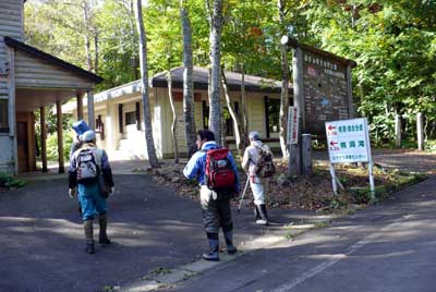 | ▲スタート地点:クマゲラ保護センター | ▲分岐点・・・右に進めば、割沢森・森吉山方面へ。直進すれば桃洞渓谷・赤水渓谷へ。 |