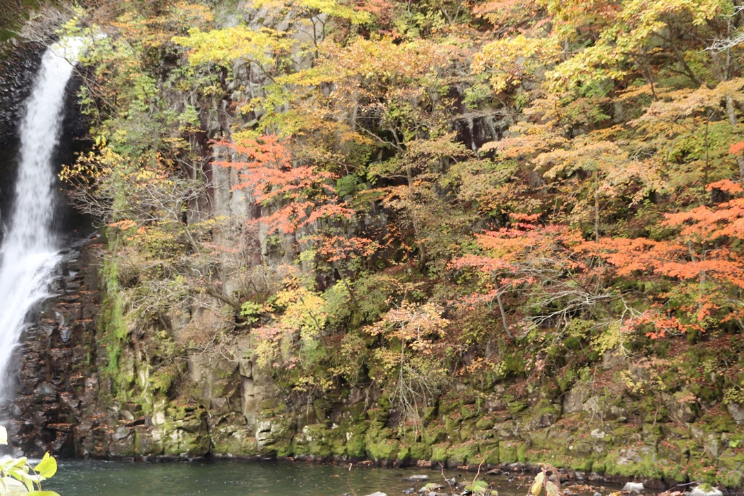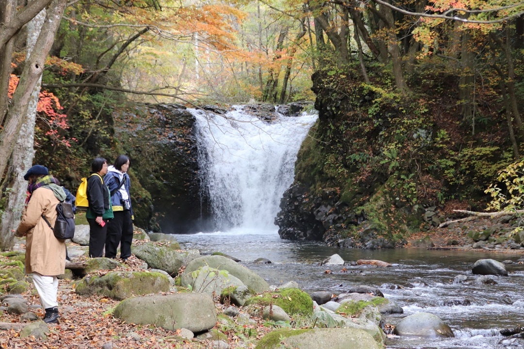 感謝祭は、「上津野(かづの)ウインドアンサンブル」の皆さんによる迫力ある生演奏から始まりました。音楽による豊かな時間を過ごしたあとは、紅葉の中の滝めぐりに向かい、大自然が織りなす美しいコントラストに感動。さらに昼食は鹿角の特産がずらりと並んだ料理で秋の味覚を楽しみました。